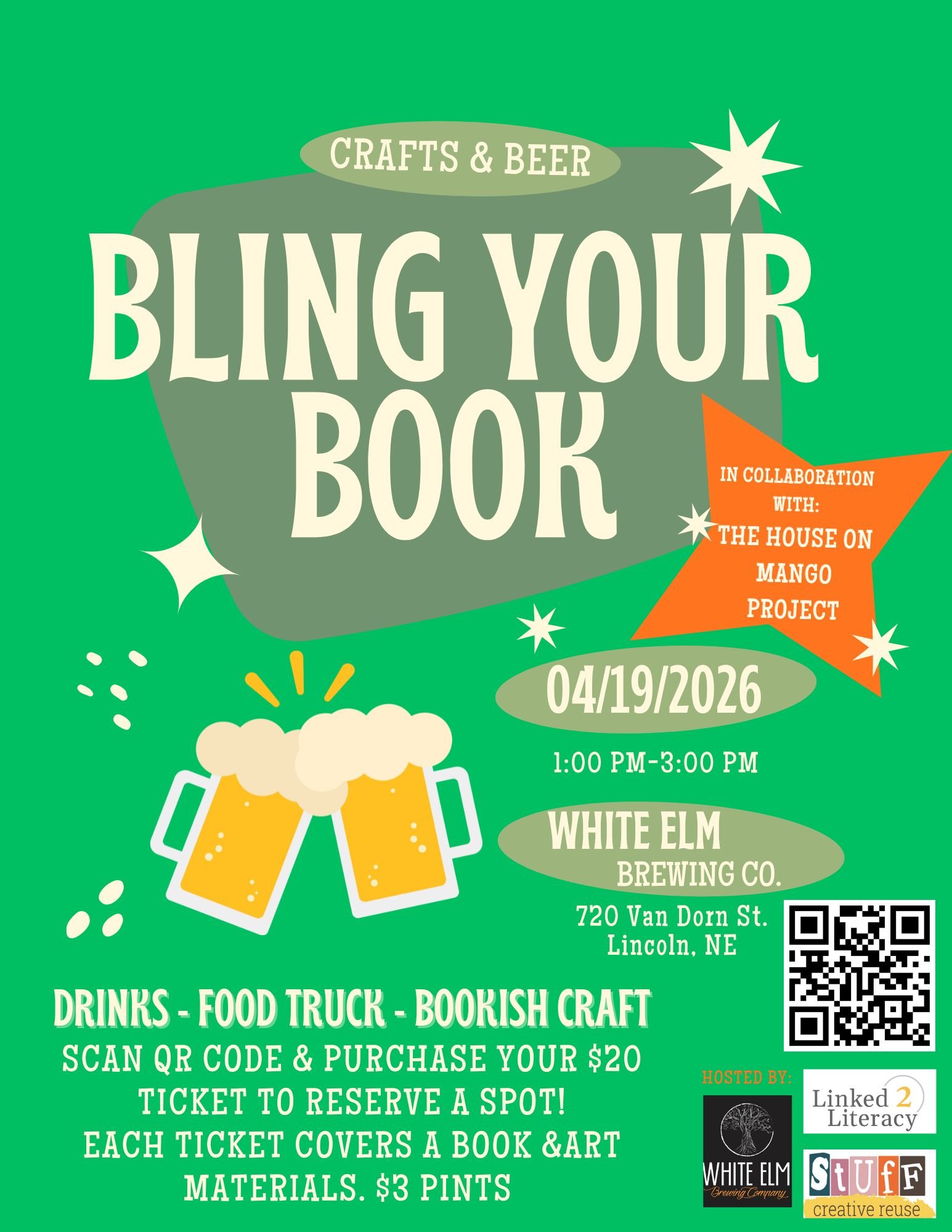 Reserve your spot by scanning the QR code on the flyer or through the ticket link. We can’t wait to craft and celebrate with you! ✨📘🍻